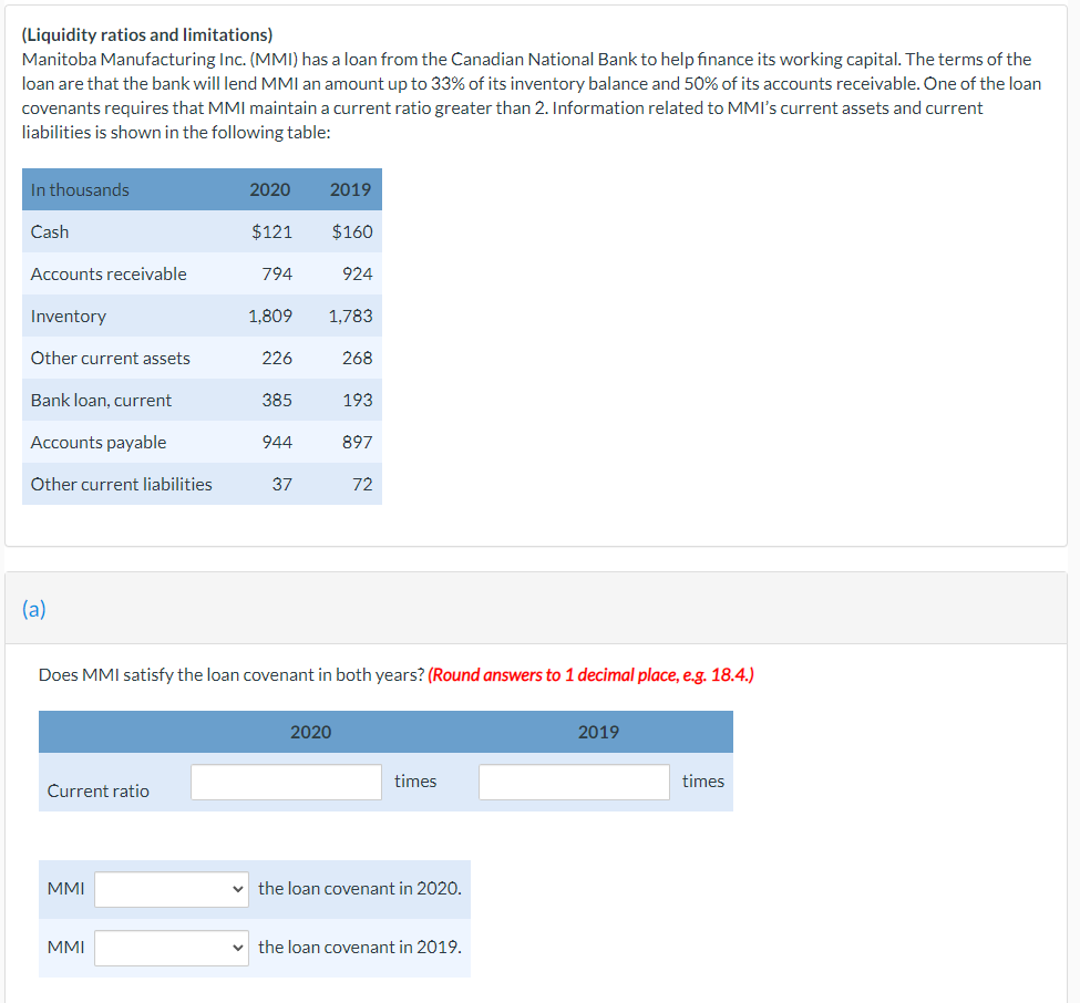 Solved Liquidity Ratios And Limitations Manitoba Chegg Com